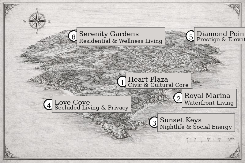 Valentine Island is a purpose-built island environment combining digital land ownership with lifestyle, culture, and long-term development. Designed at the scale of a real city and structured into distinct districts, it offers early participants the opportunity to secure land in a growing digital territory.